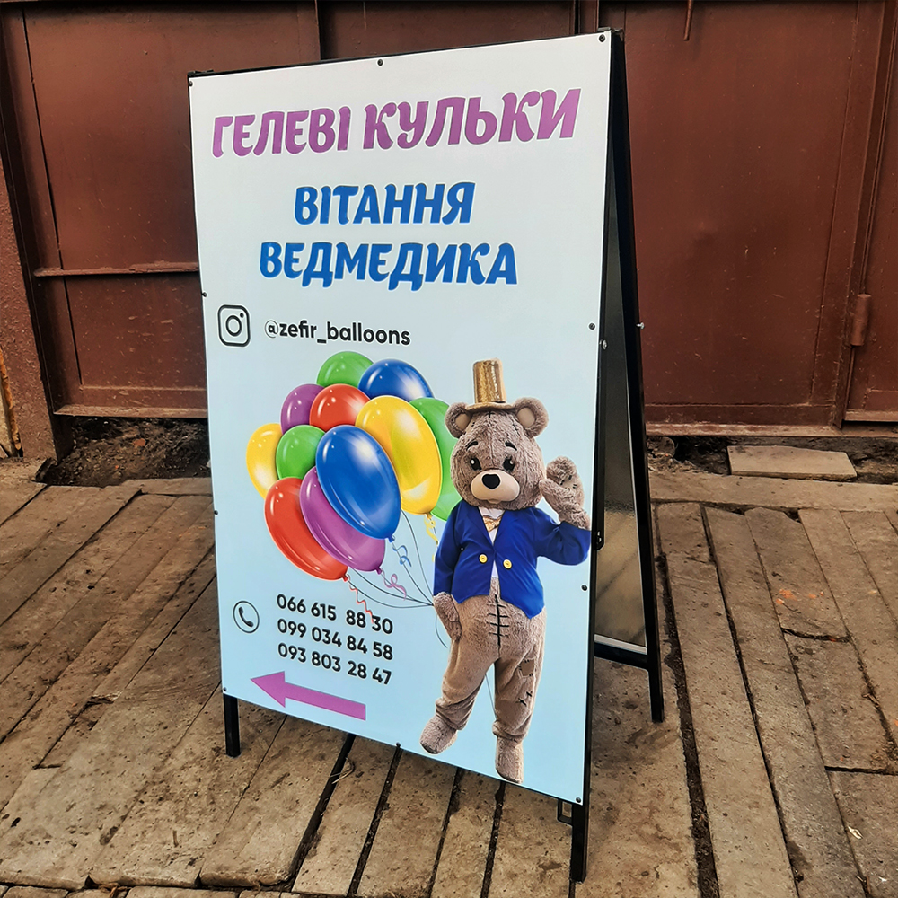 Мобільні конструкції для реклами. Легко переносяться і швидко оновлюються.